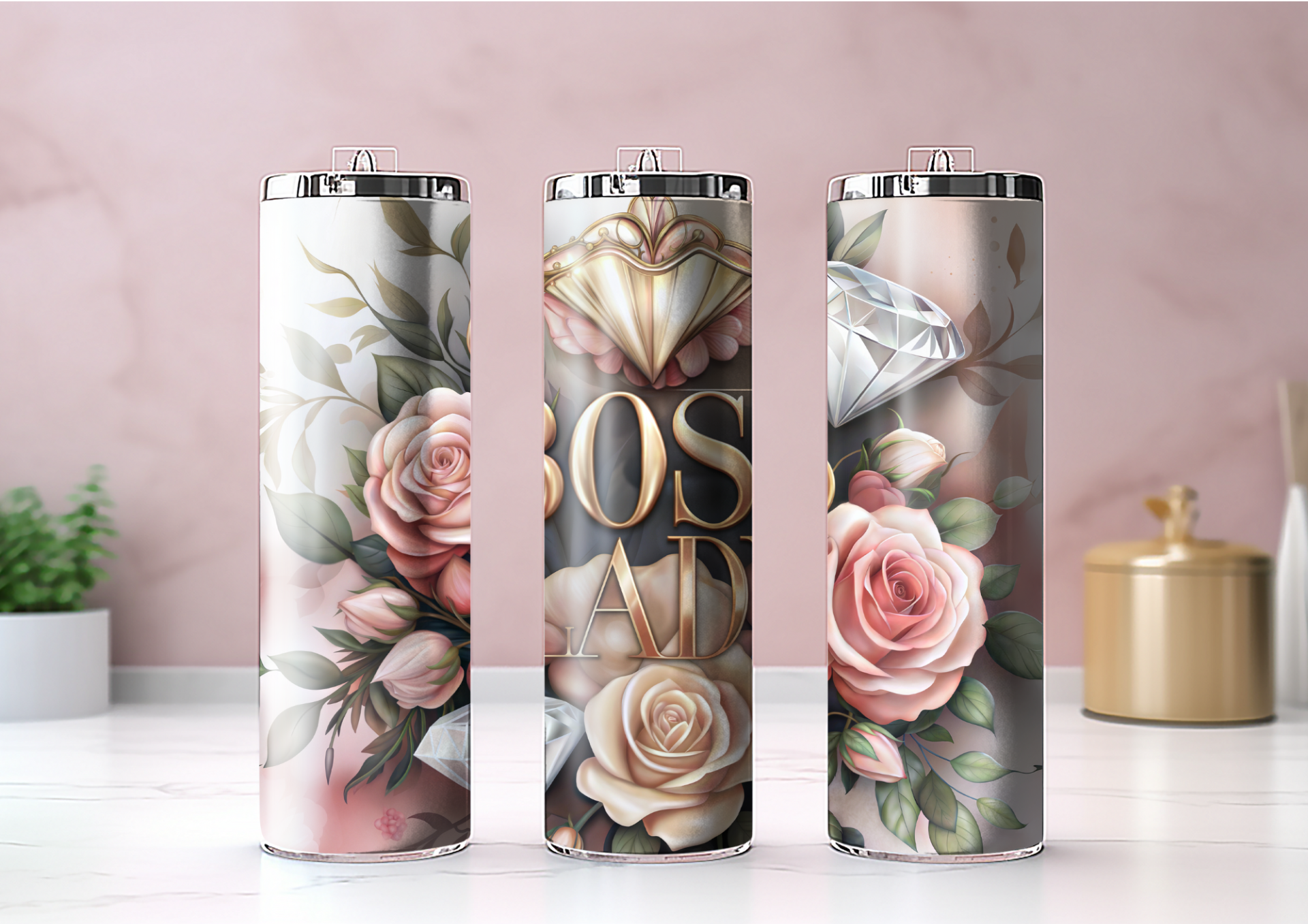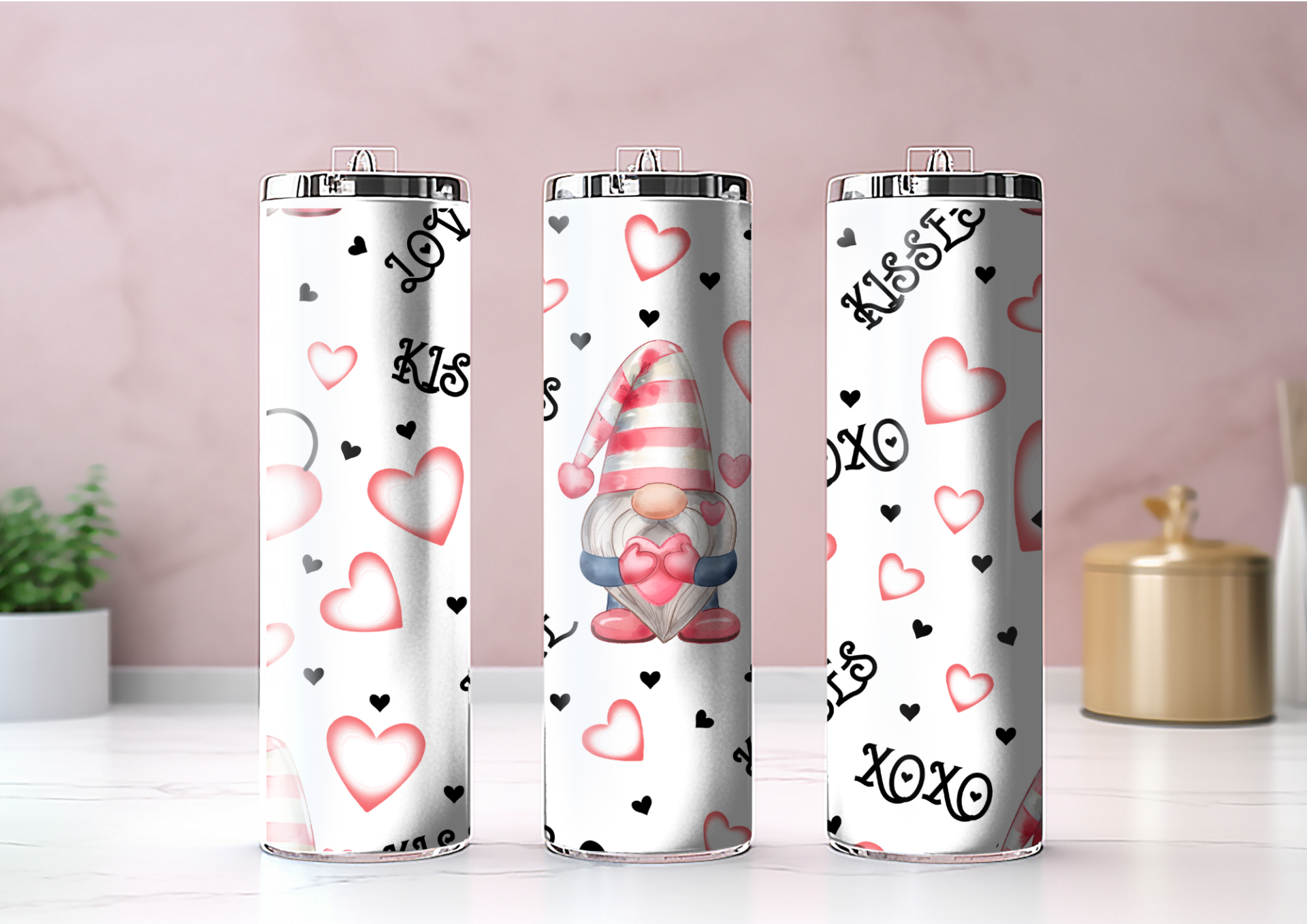 Rustfrit stål Thermo-Tumbler med låg. Låget har en lukbar drikkeåbning.